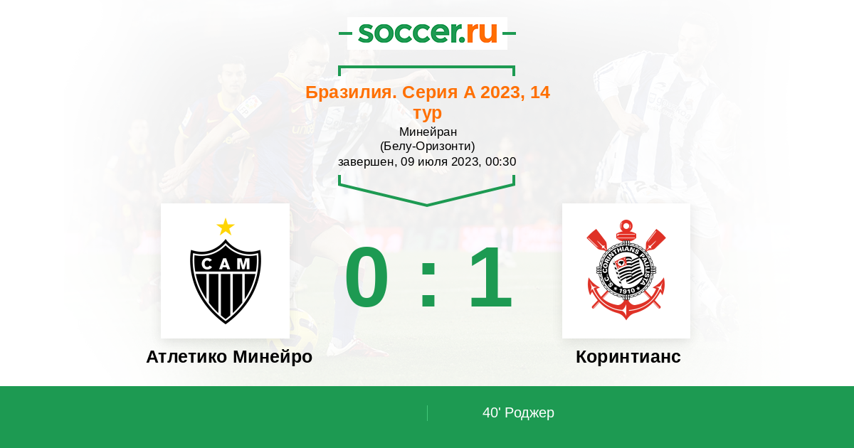 Протокол матча Атлетико Минейро против Коринтианс
