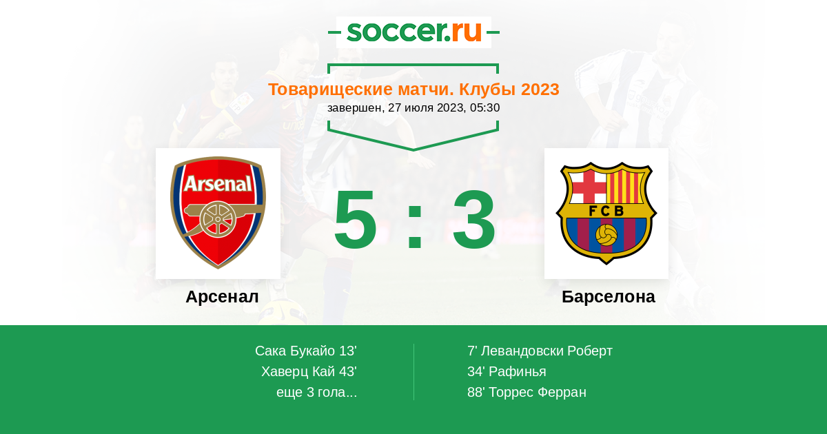 Протокол матча Арсенал против Барселона