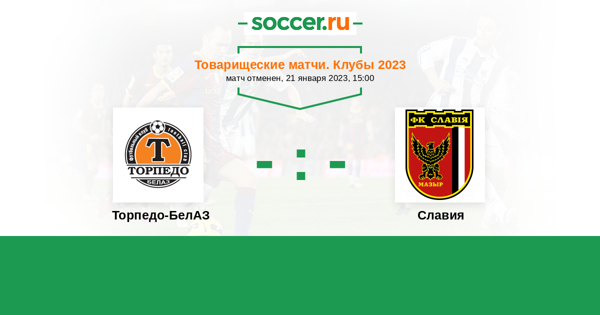 Товарищеские матчи. Клубы 20.01.2024 Торпедо-БелАЗ Логотип футбольный клуб Торпедо-БелАЗ (Жодино) 1:0 Логотип футбольный клуб Славия (Мозырь) Славия