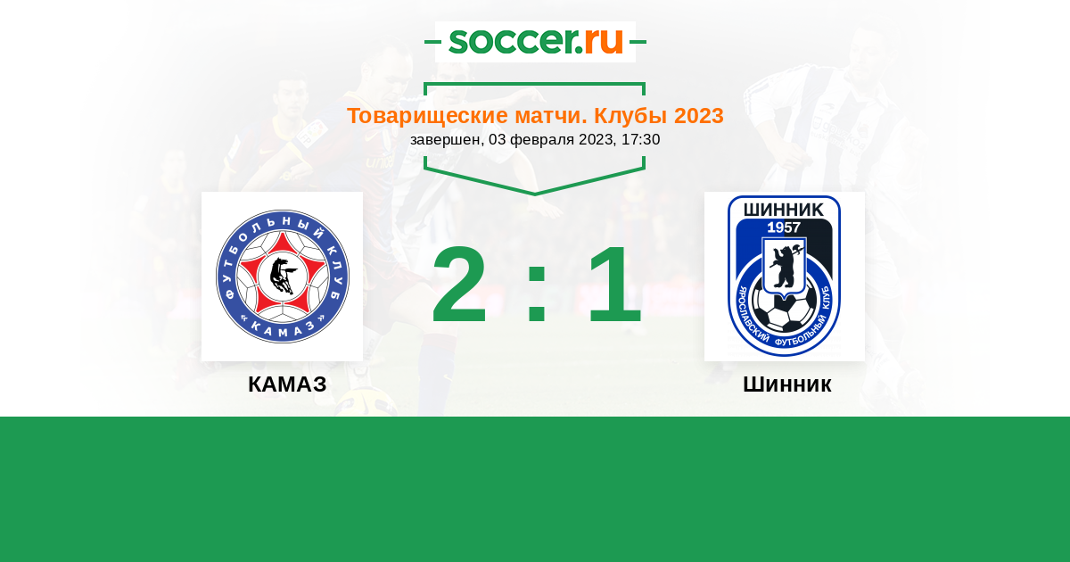 Россия. Кубок ФНЛ 27.02.2020 КАМАЗ Логотип футбольный клуб КАМАЗ (Набережные Челны) 0:3 Логотип футбольный клуб Шинник (Ярославль) Шинник