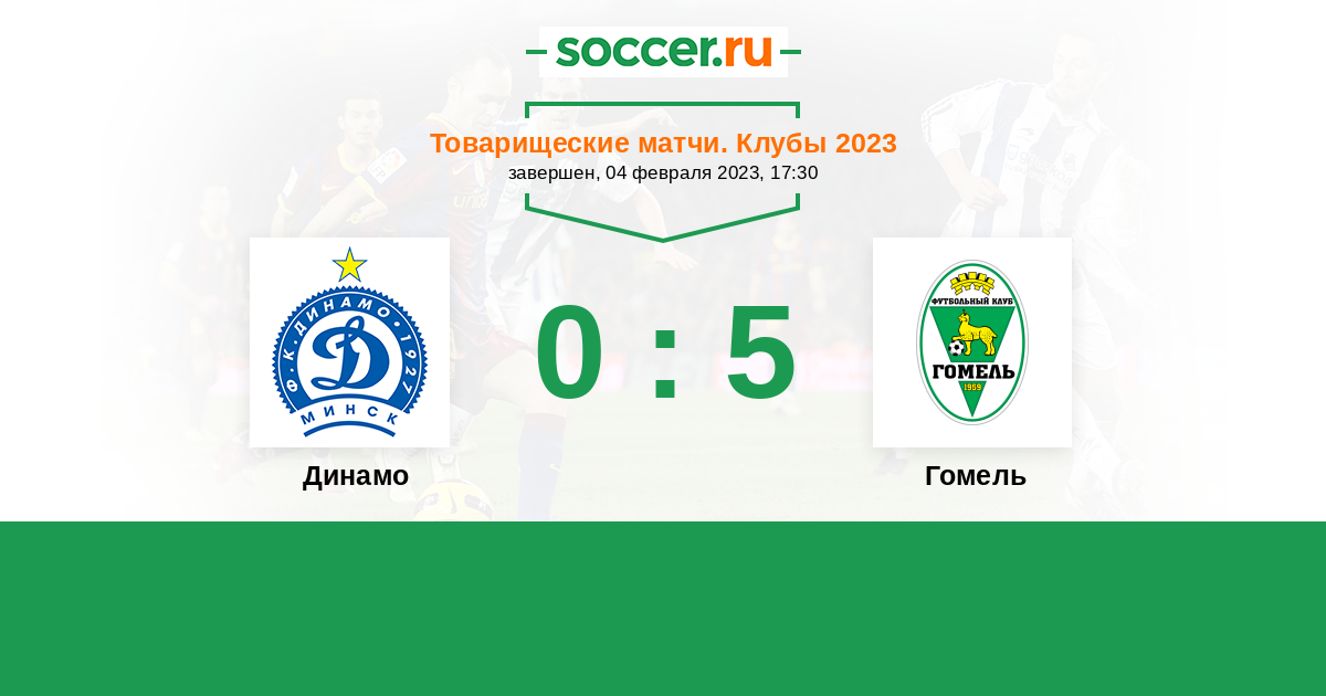 Товарищеские матчи. Клубы 17.02.2024 Динамо Логотип футбольный клуб Динамо (Минск) 1:0 Логотип футбольный клуб Гомель Гомель