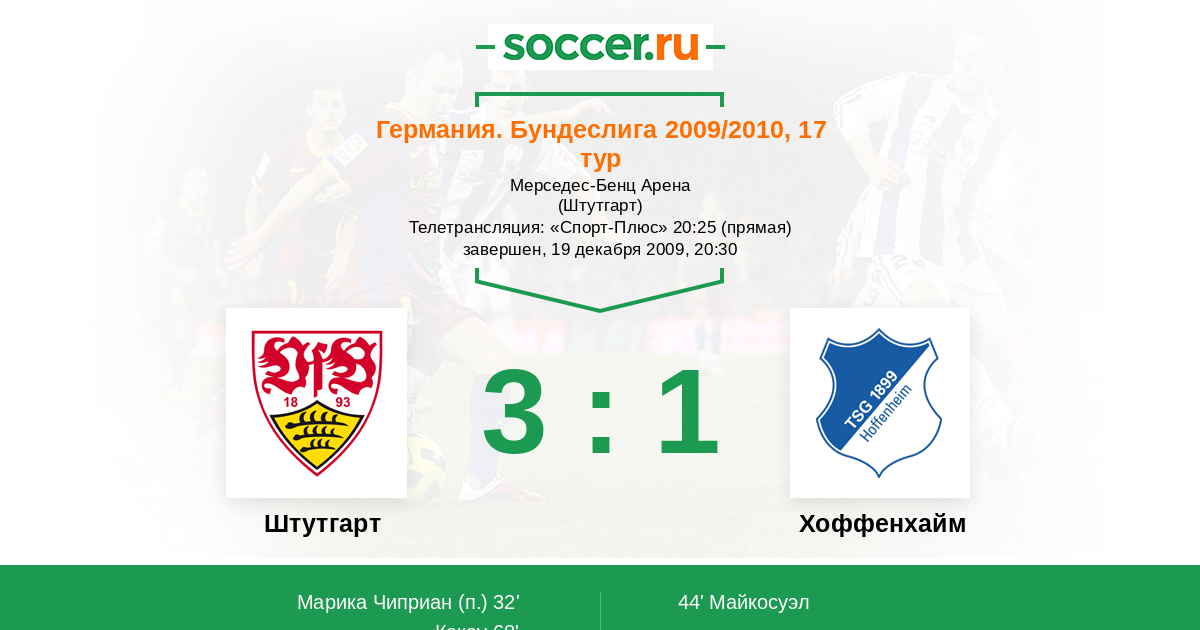 Протокол матча Штутгарт против Хоффенхайм