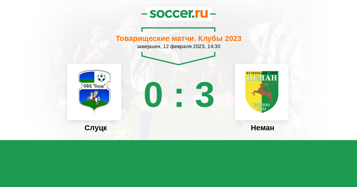 Товарищеские матчи. Клубы 22.02.2023 Неман Логотип футбольный клуб Неман (Гродно) 2:0 Логотип футбольный клуб Слуцк Слуцк