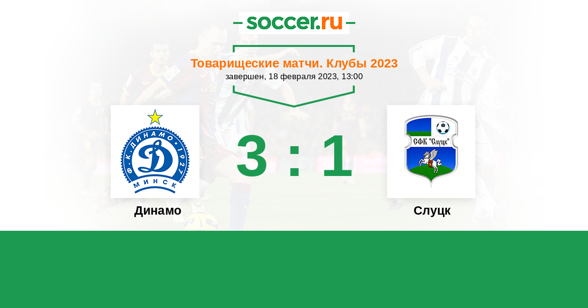 Беларусь. Высшая лига 08.04.2023 Динамо Логотип футбольный клуб Динамо (Минск) 3:1 Логотип футбольный клуб Слуцк Слуцк