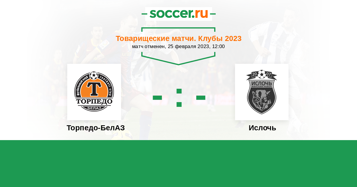 Товарищеские матчи. Клубы 17.02.2024 Ислочь Логотип футбольный клуб Ислочь (Минск) 2:2 Логотип футбольный клуб Торпедо-БелАЗ (Жодино) Торпедо-БелАЗ