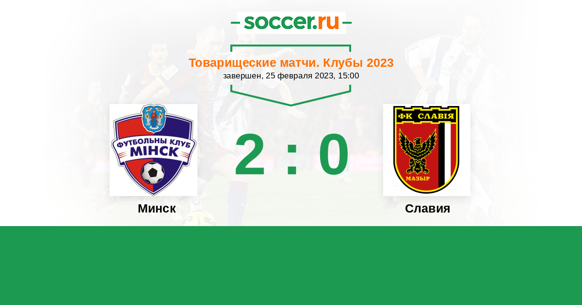 Товарищеские матчи. Клубы 16.02.2019 Минск Логотип футбольный клуб Минск 0:1 Логотип футбольный клуб Славия (Мозырь) Славия