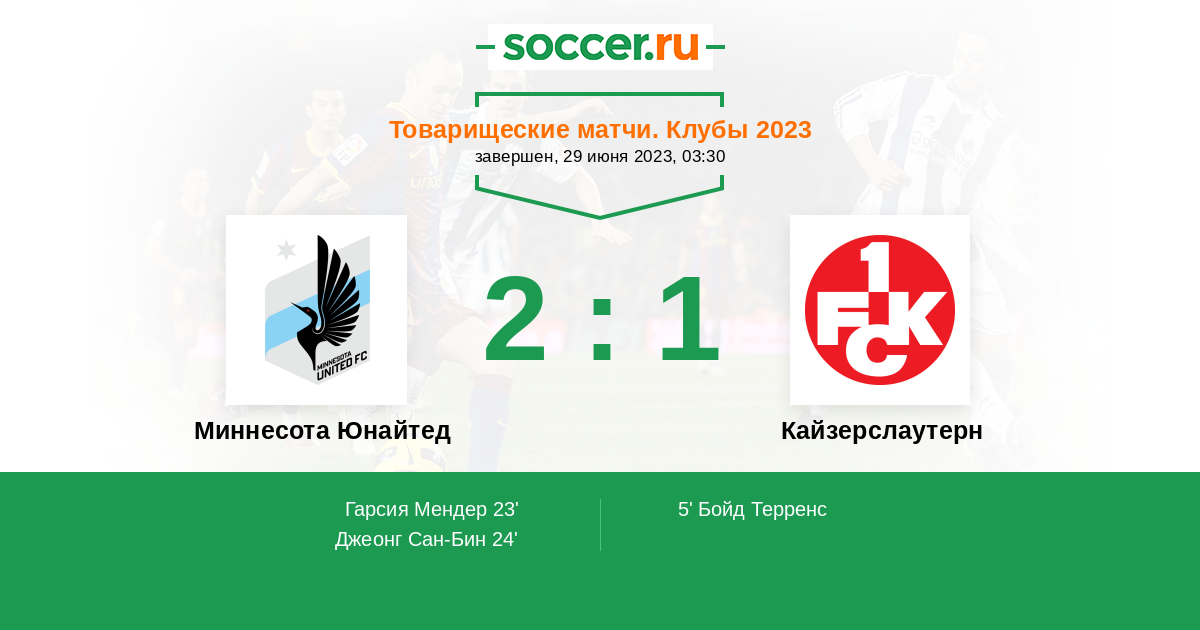 Протокол матча Миннесота Юнайтед против Кайзерслаутерн