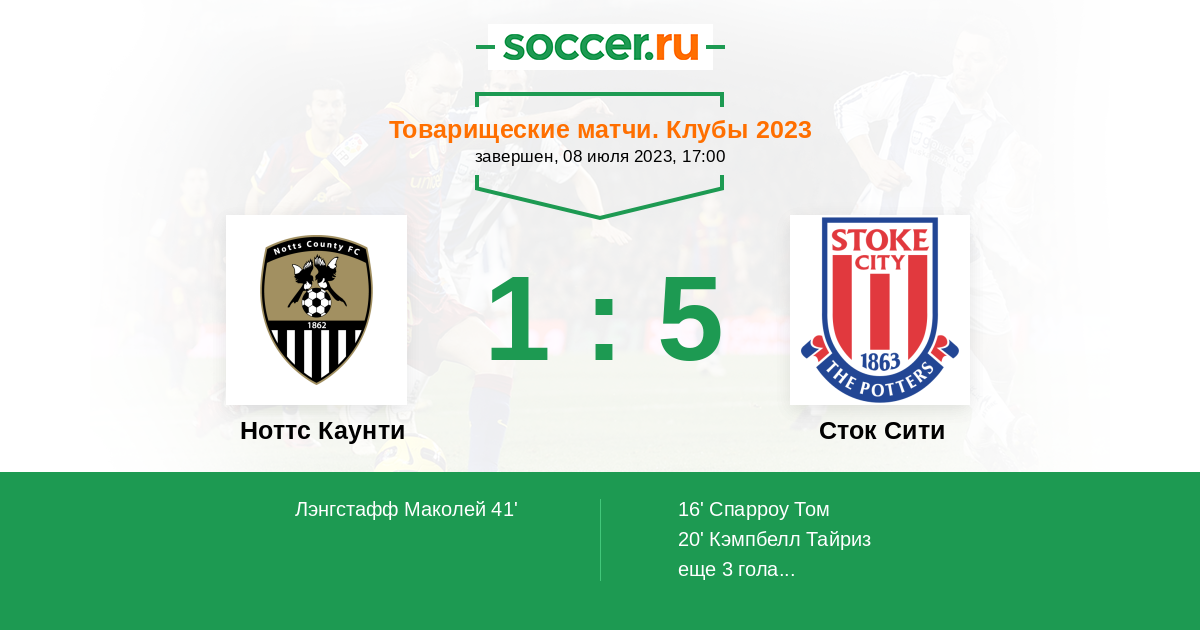 Протокол матча Ноттс Каунти против Сток Сити
