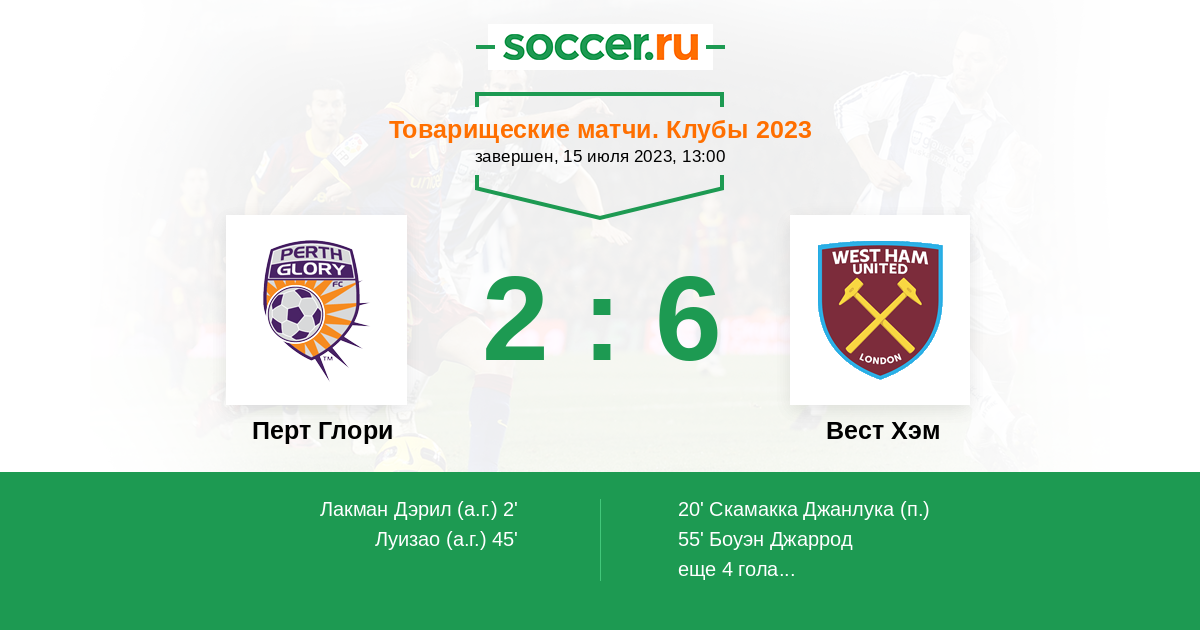 Протокол матча Перт Глори против Вест Хэм
