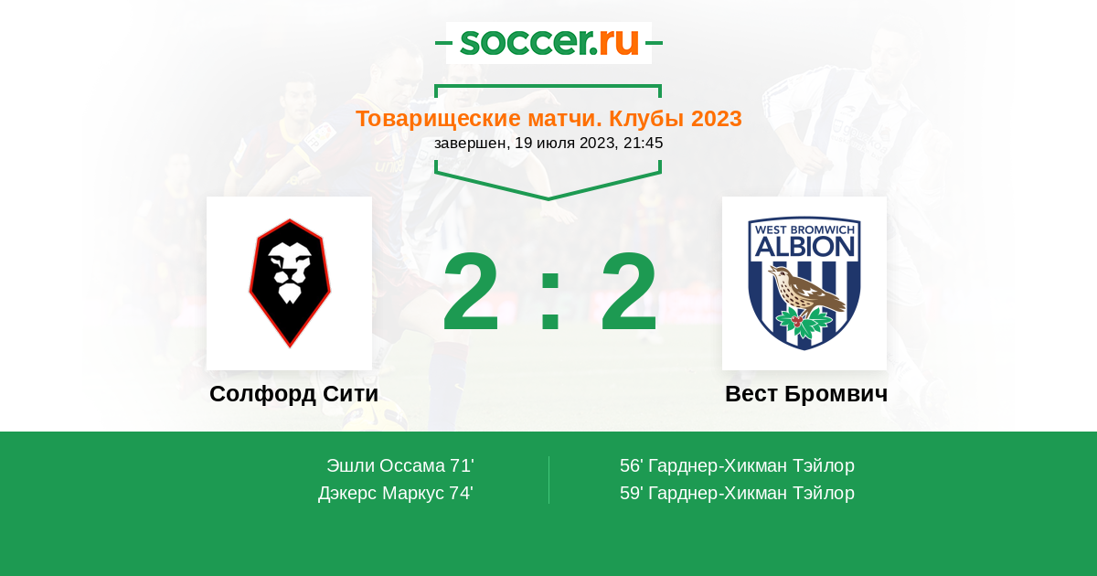 Протокол матча Солфорд Сити против Вест Бромвич