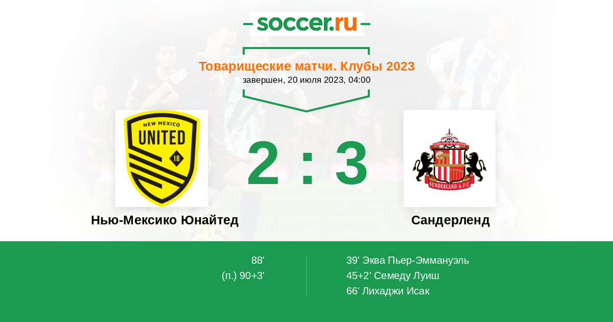 Протокол матча Нью-Мексико Юнайтед против Сандерленд