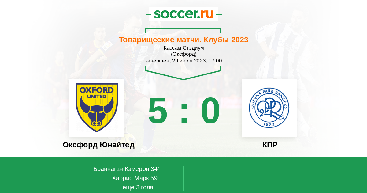 Протокол матча Оксфорд Юнайтед против КПР