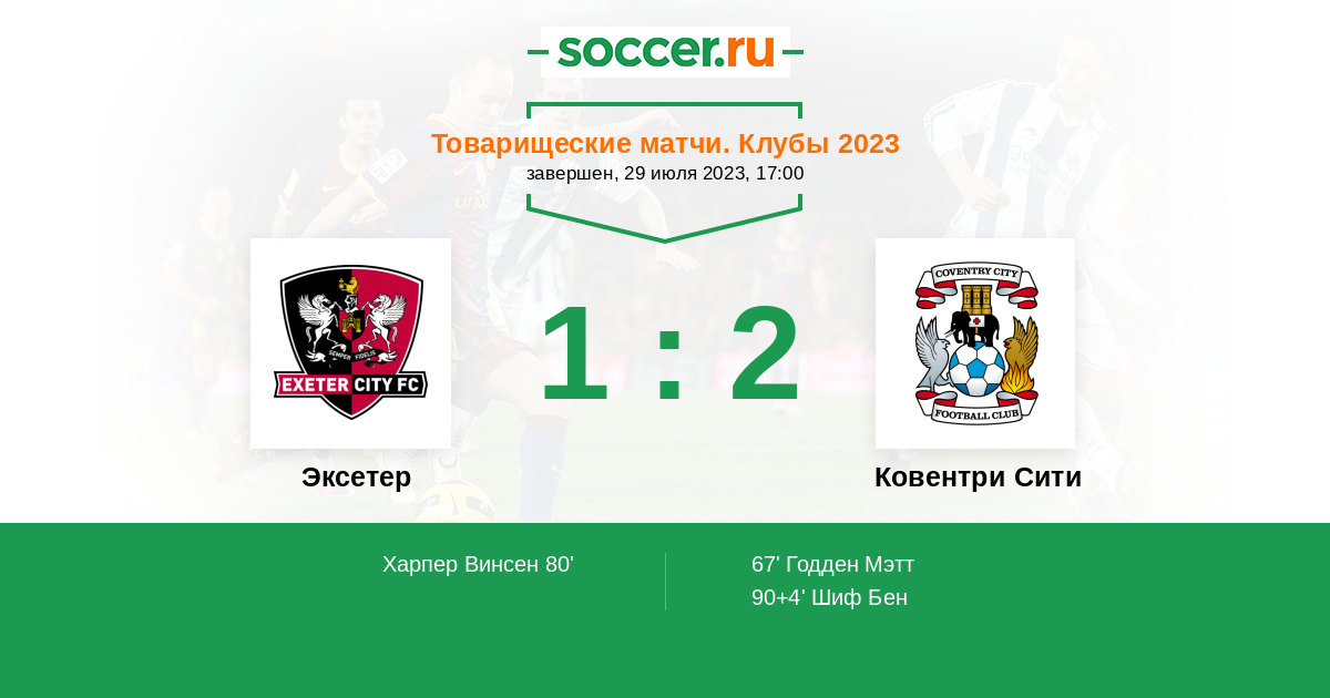 Протокол матча Эксетер против Ковентри Сити