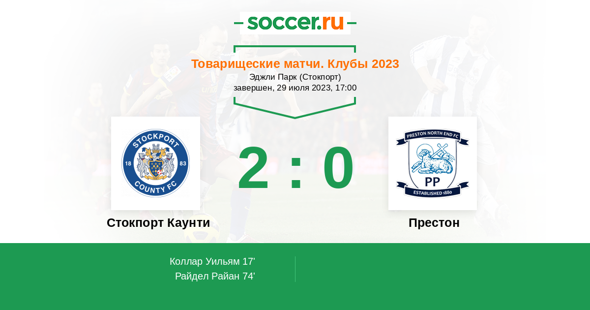Протокол матча Стокпорт Каунти против Престон