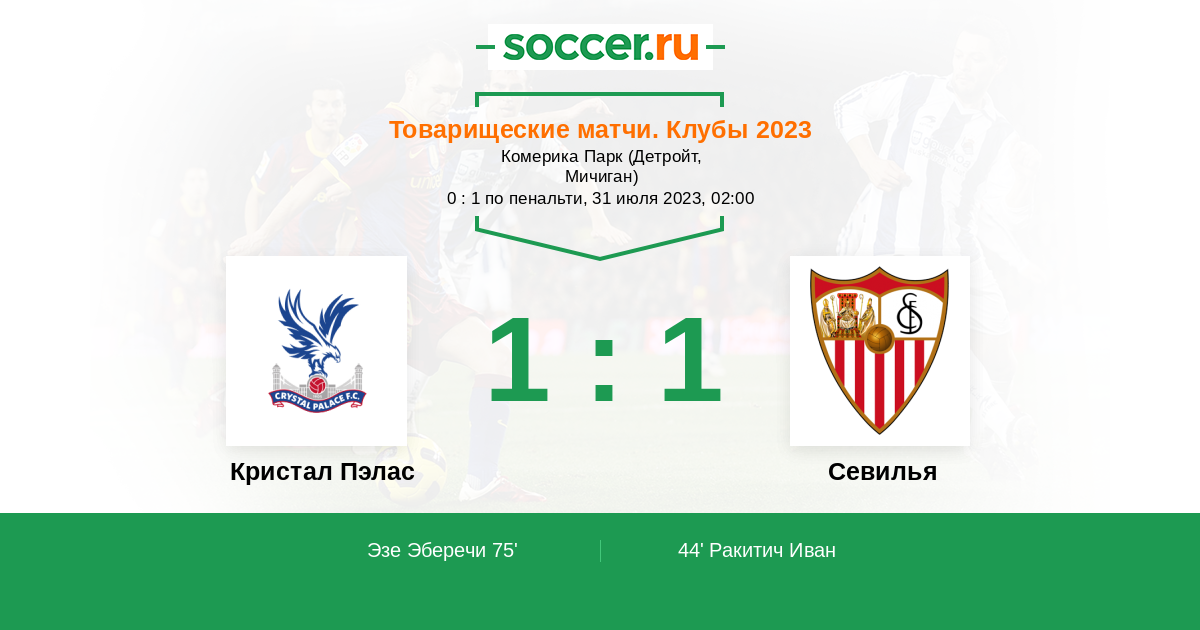 Протокол матча Кристал Пэлас против Севилья