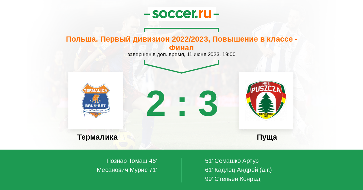 Протокол матча Термалика против Пуща