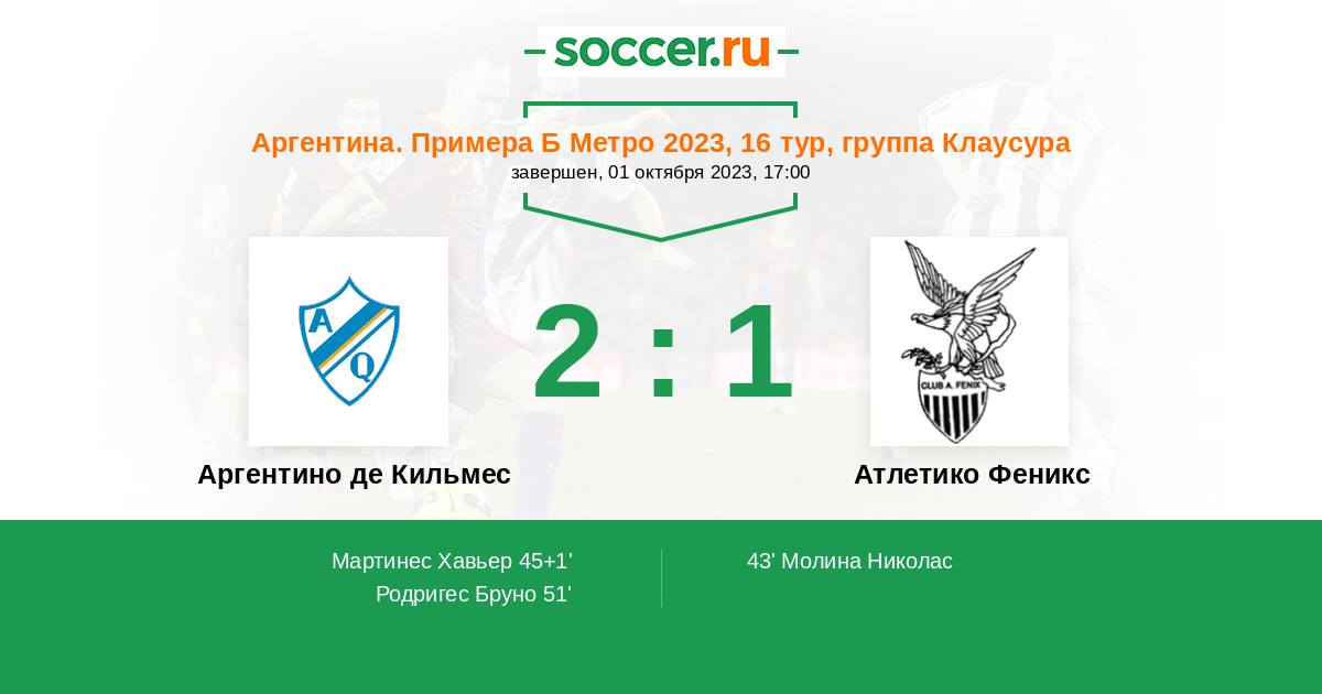Протокол матча Аргентино де Кильмес против Атлетико Феникс