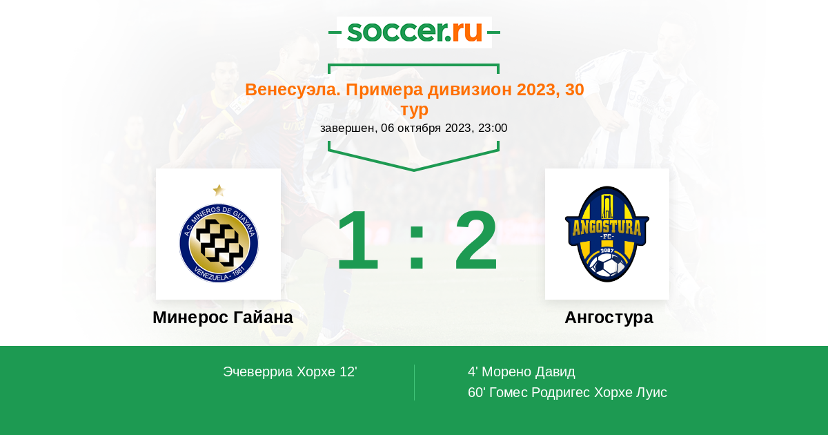 Протокол матча Минерос Гайана против Ангостура