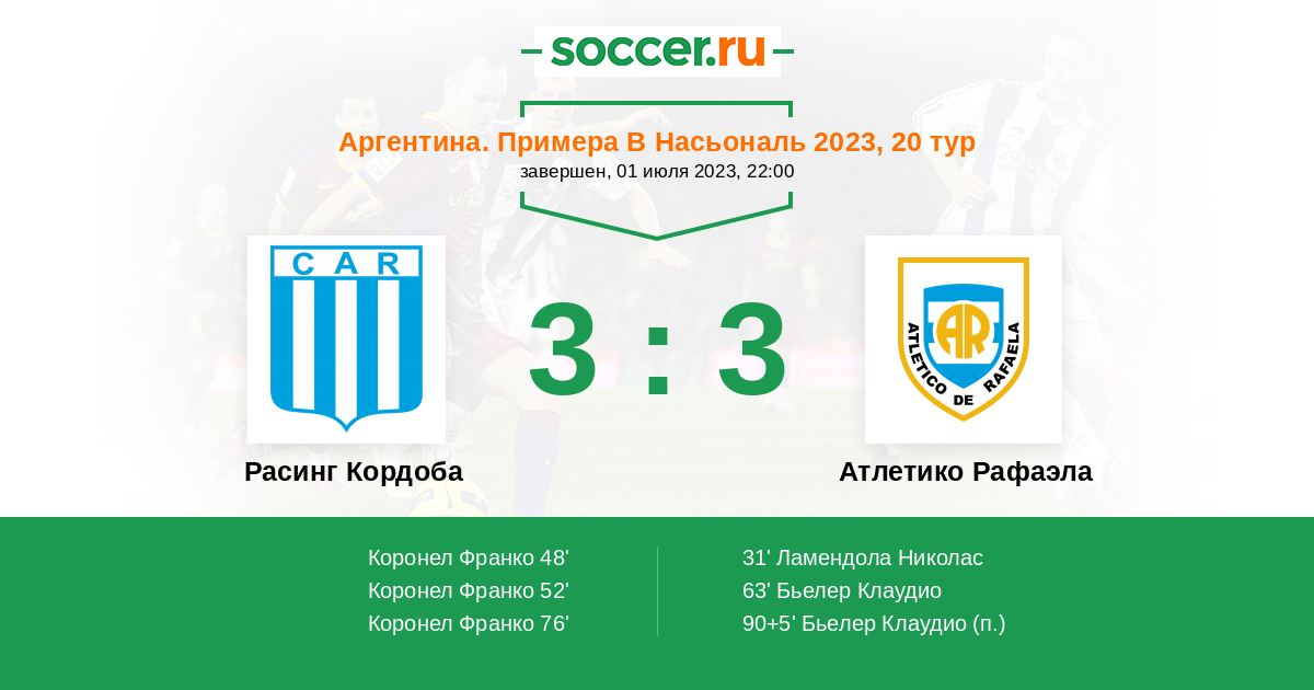 Протокол матча Расинг Кордоба против Атлетико Рафаэла