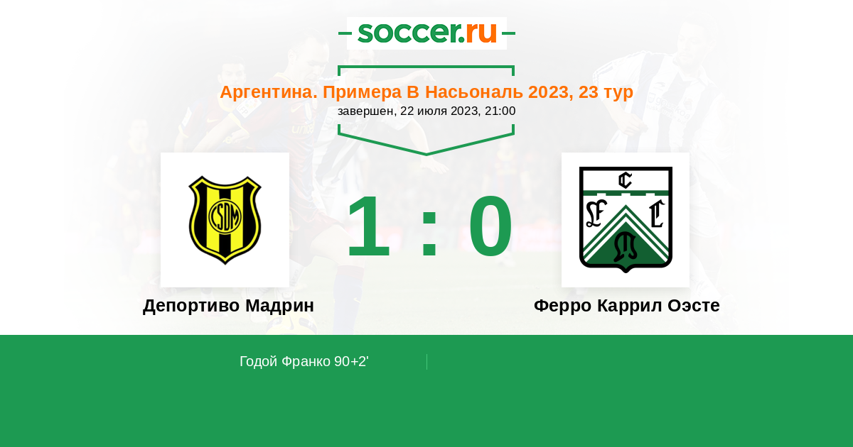 Протокол матча Депортиво Мадрин против Ферро Каррил Оэсте