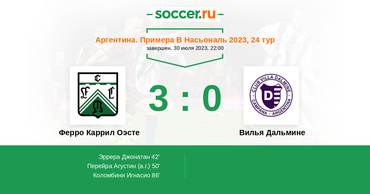 Протокол матча Ферро Каррил Оэсте против Вилья Дальмине