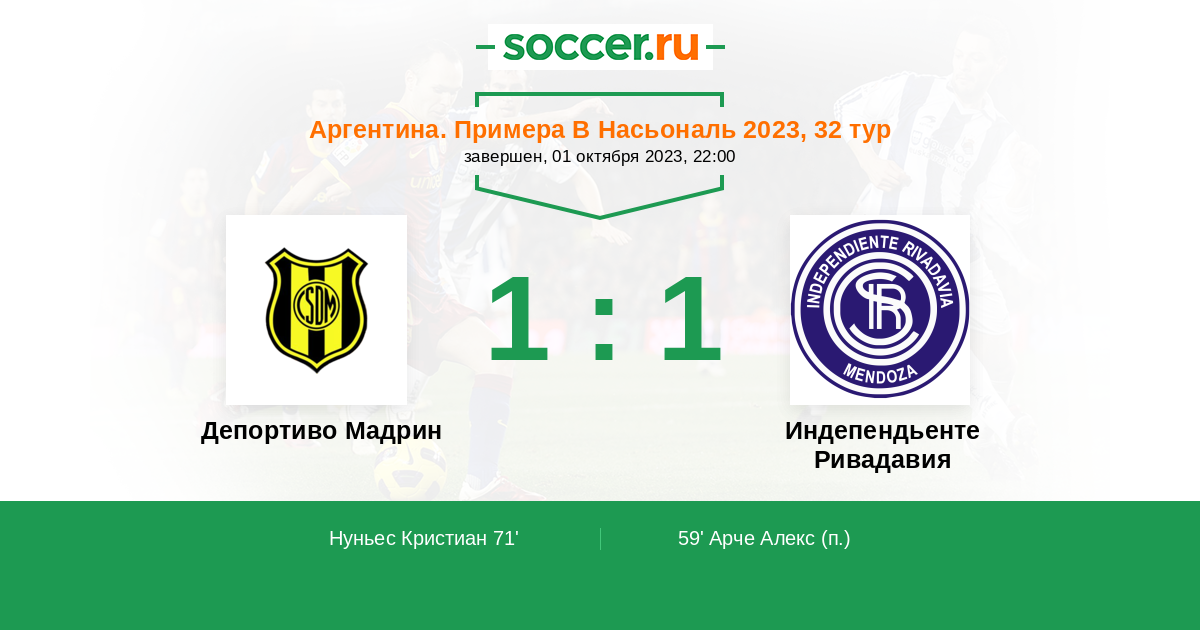 Протокол матча Депортиво Мадрин против Индепендьенте Ривадавия