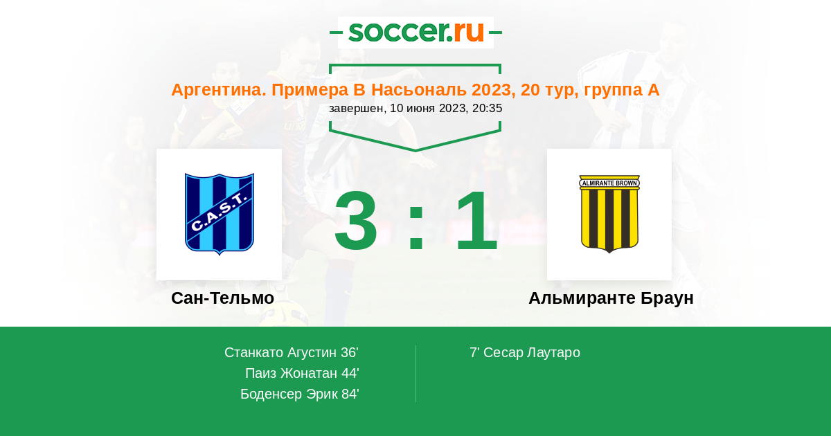 Протокол матча Сан-Тельмо против Альмиранте Браун