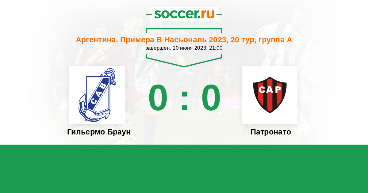 Протокол матча Гильермо Браун против Патронато