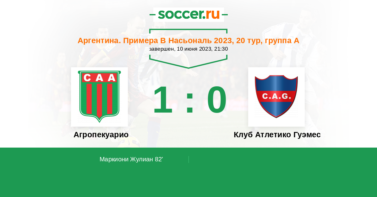 Протокол матча Агропекуарио против Атлетико Гуэмес