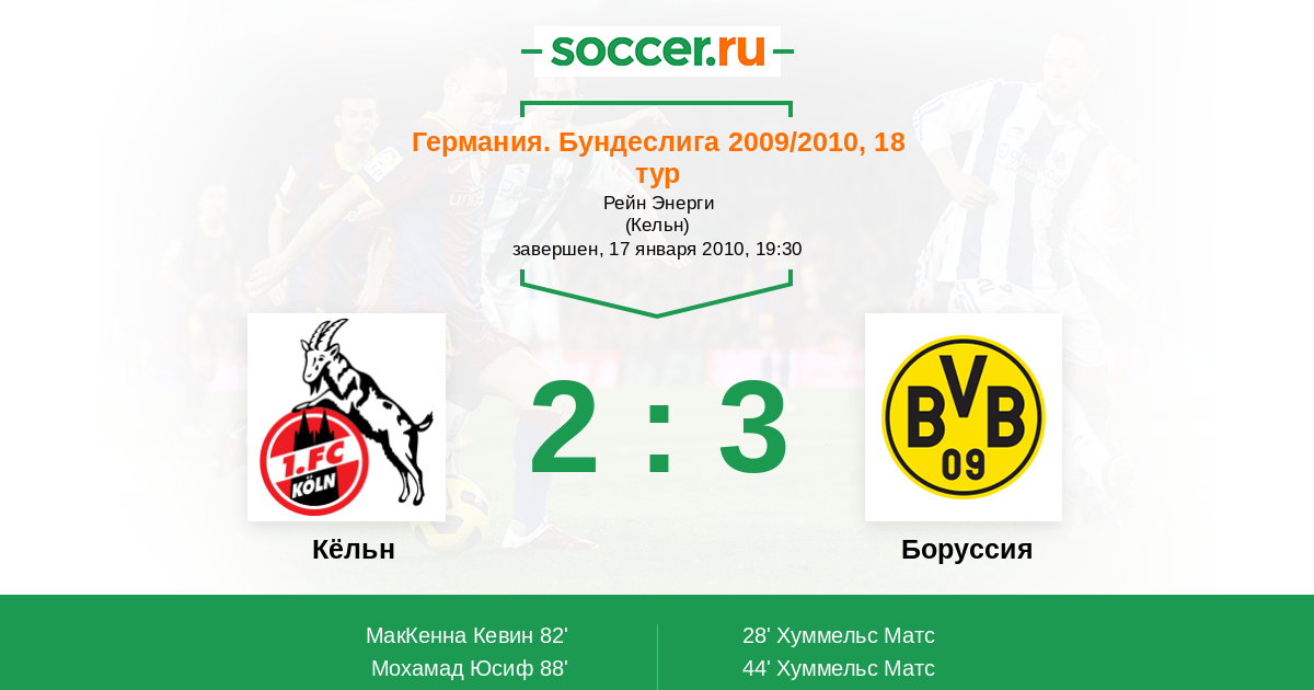 Протокол матча Кёльн против Боруссия