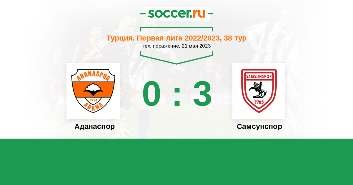 Турция. Первая лига 09.05.2021 Аданаспор Логотип футбольный клуб Аданаспор 0:2 Логотип футбольный клуб Самсунспор Самсунспор