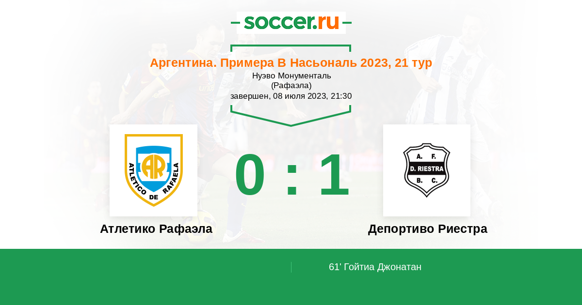 Протокол матча Атлетико Рафаэла против Депортиво Риестра