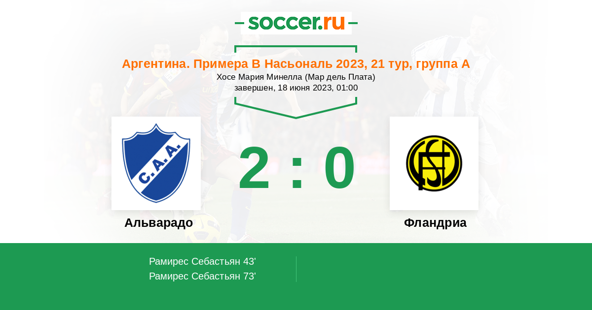 Протокол матча Альварадо против Фландриа
