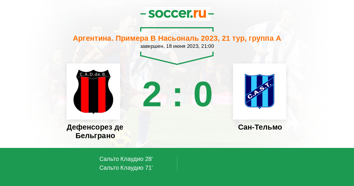 Протокол матча Дефенсорез де Бельграно против Сан-Тельмо
