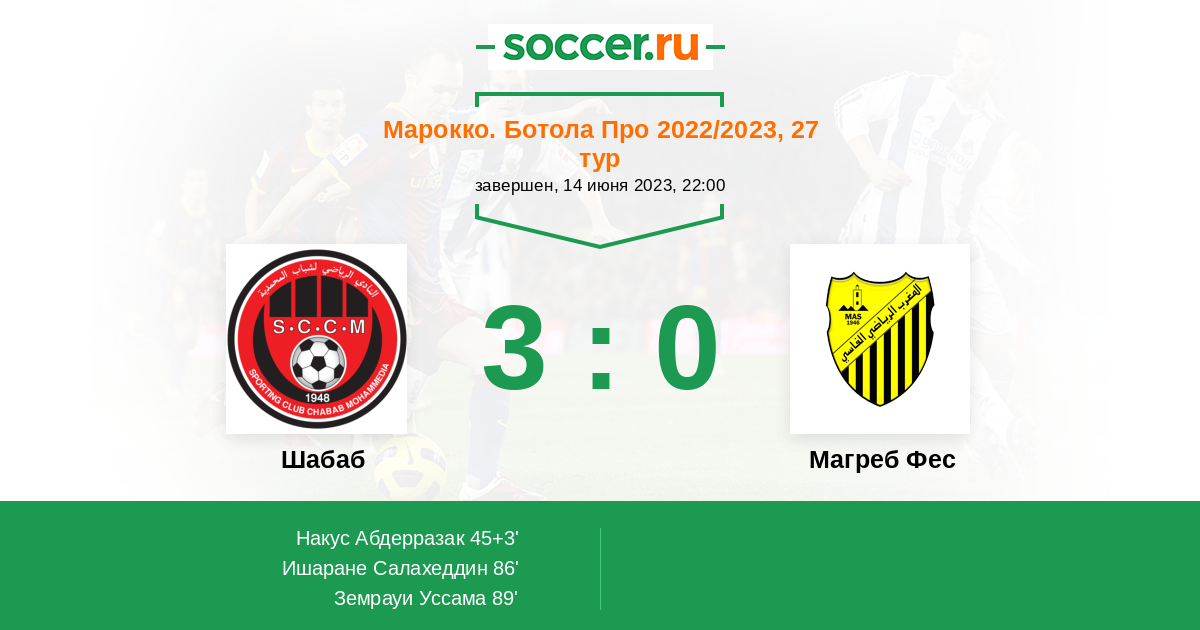 Протокол матча Шабаб против Магреб Фес