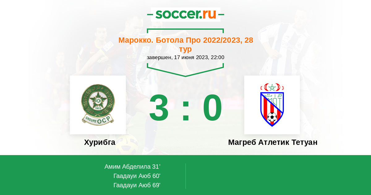 Протокол матча Хурибга против Магреб Атлетик Тетуан