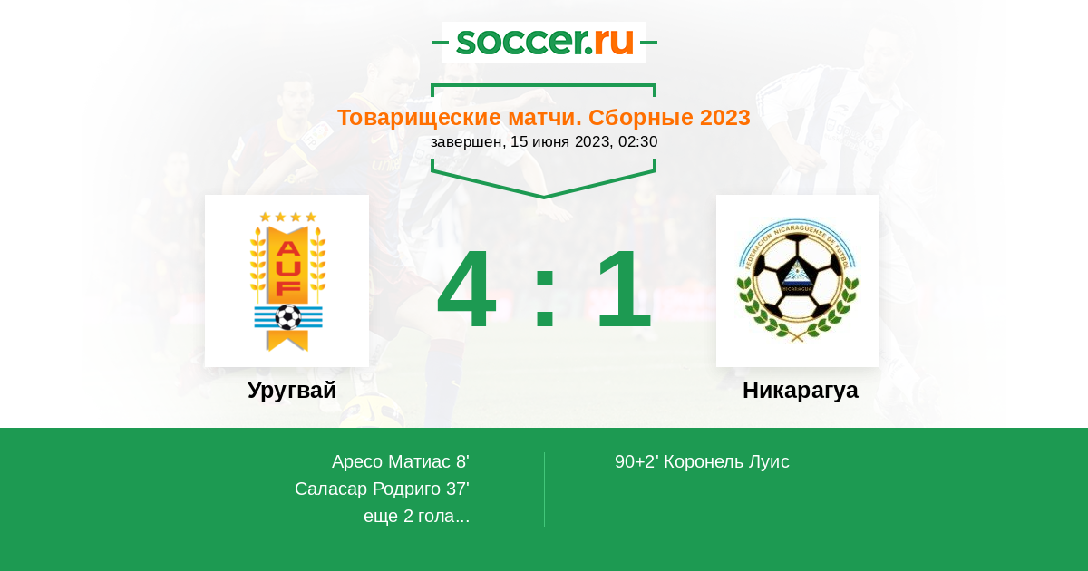 Протокол матча Уругвай против Никарагуа