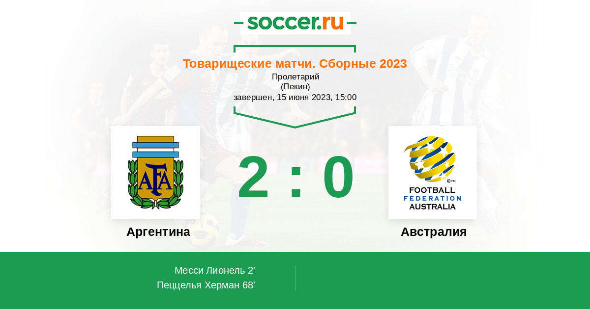 Протокол матча Аргентина против Австралия