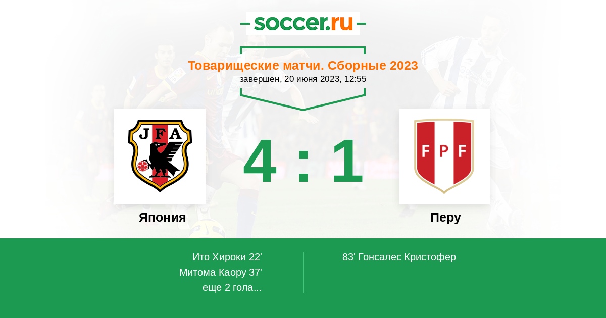 22' (1:0) Ито Хироки (21) (Эндо Ватару (6))