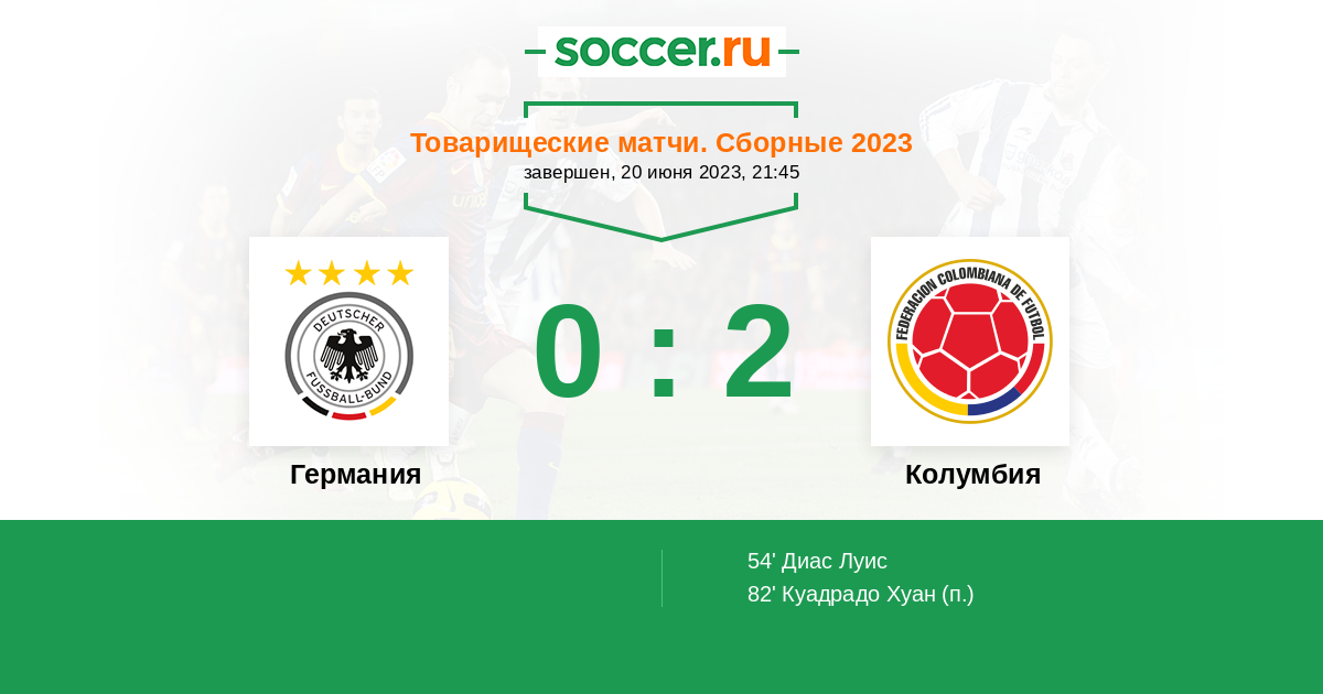 Протокол матча Германия против Колумбия