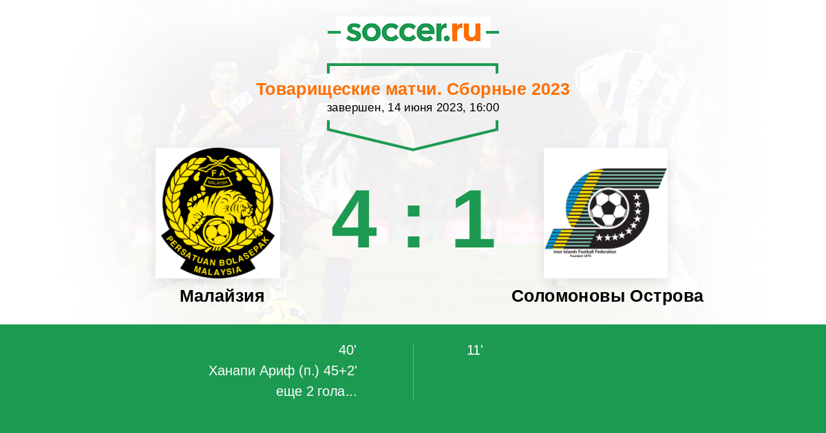 Протокол матча Малайзия против Соломоновы Острова