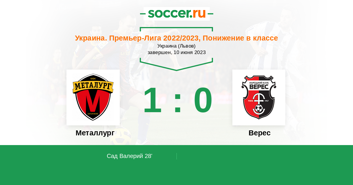 Протокол матча Металлург против Верес