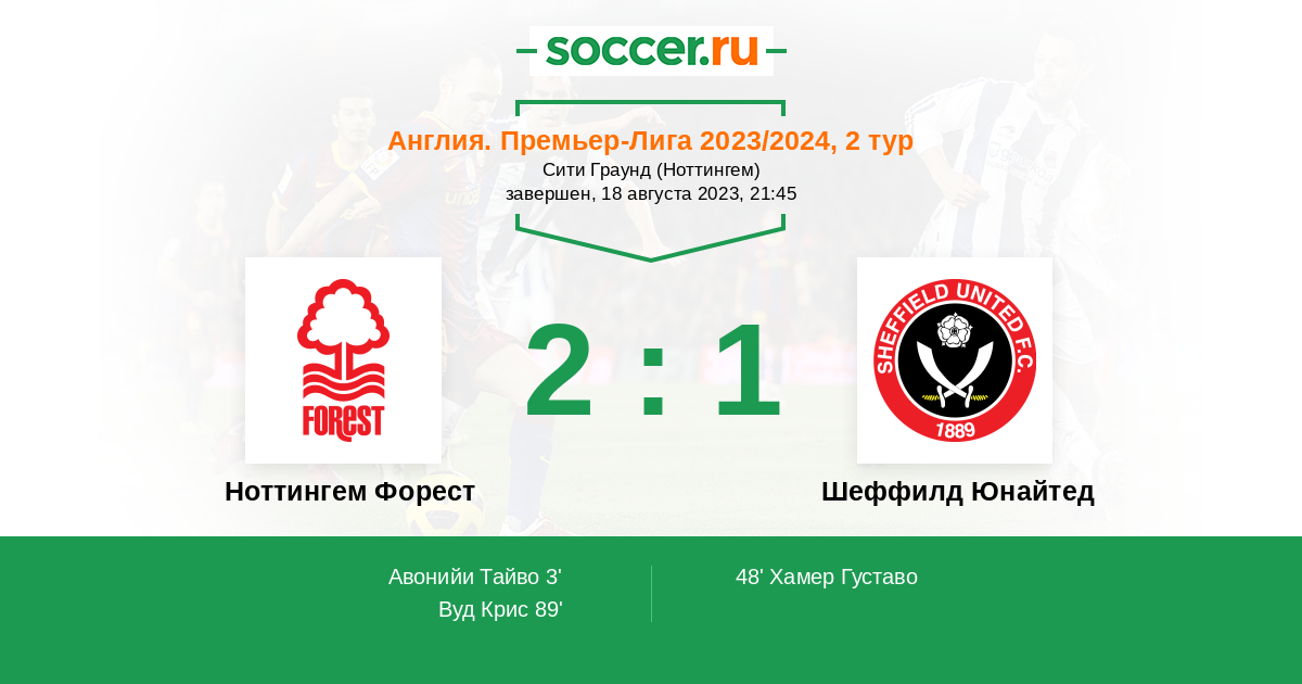 Протокол матча Ноттингем Форест против Шеффилд Юнайтед