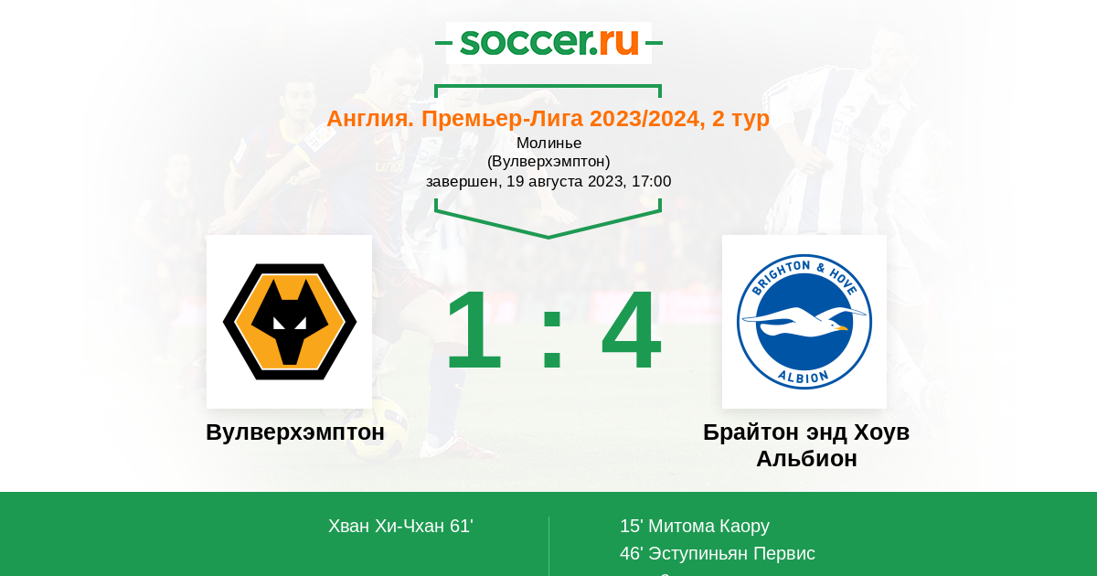 Протокол матча Вулверхэмптон против Брайтон энд Хоув Альбион