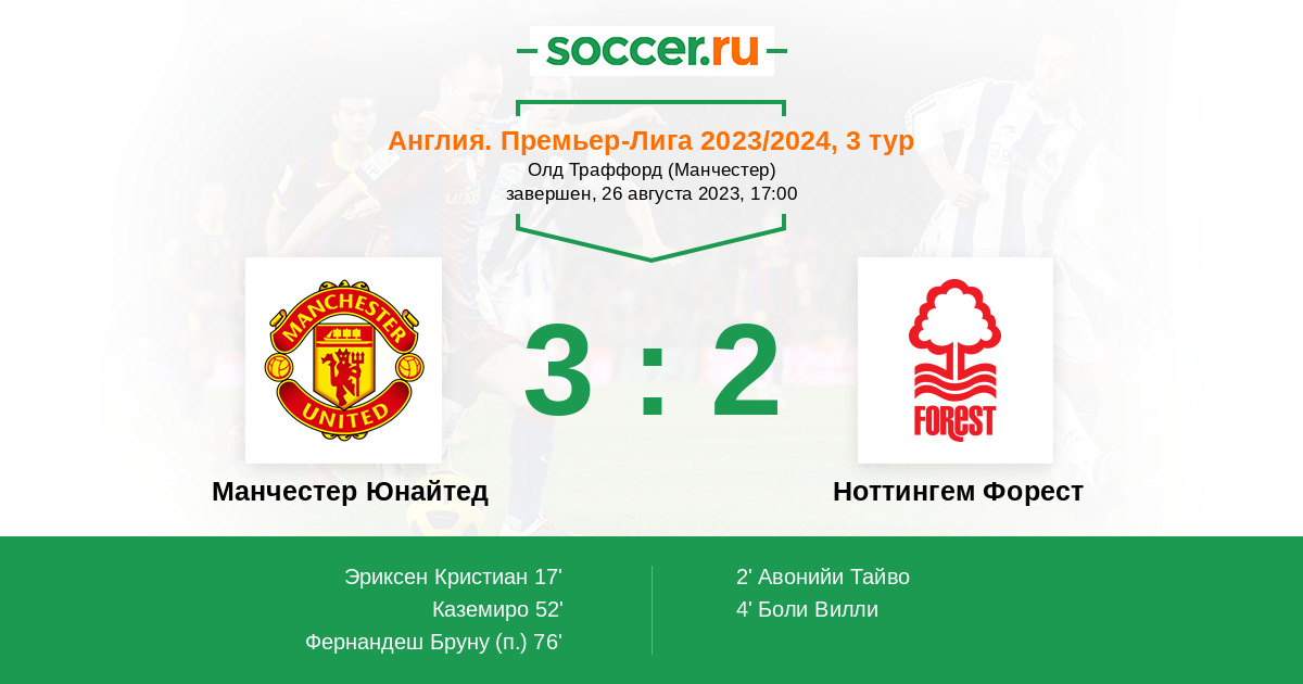 Протокол матча Манчестер Юнайтед против Ноттингем Форест