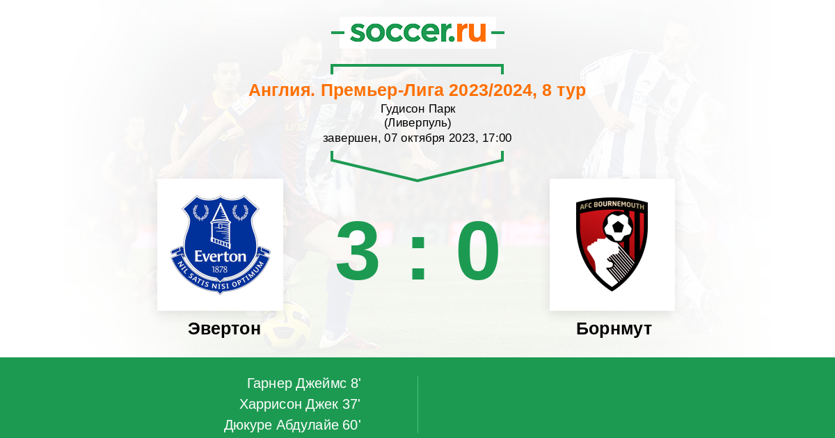 Протокол матча Эвертон против Борнмут