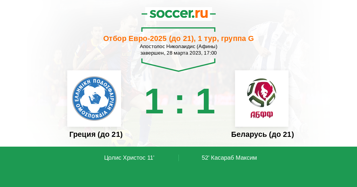 Протокол матча Греция (до 21) против Беларусь (до 21)