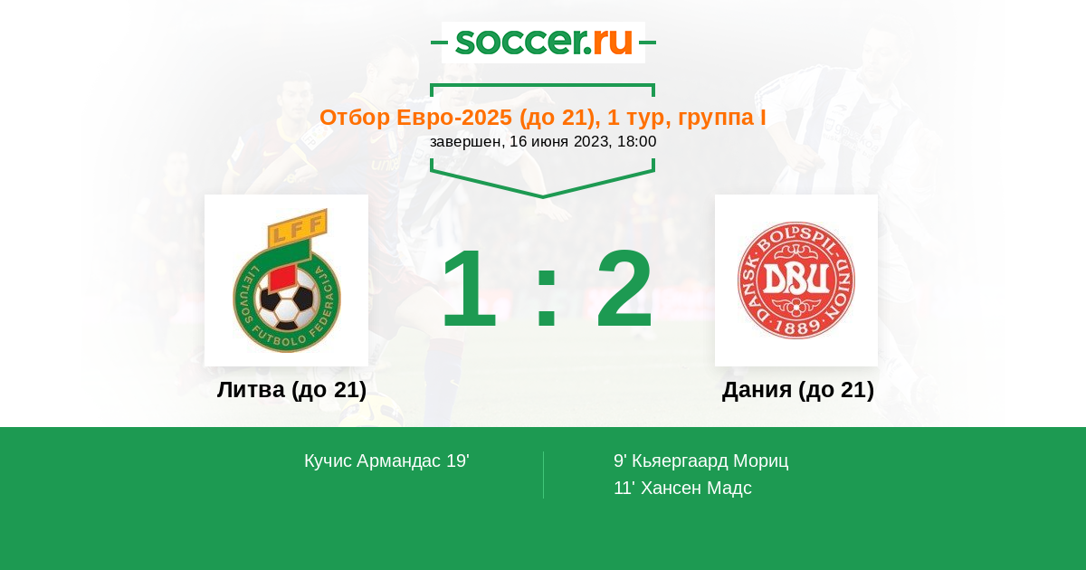 Протокол матча Литва (до 21) против Дания (до 21)