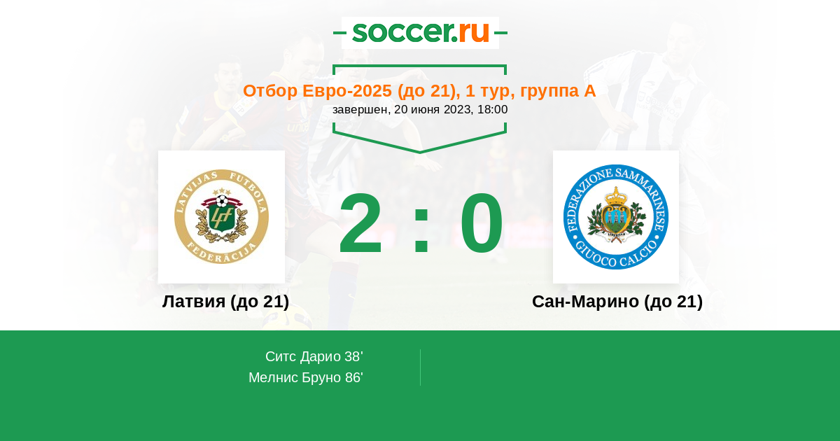 Протокол матча Латвия (до 21) против Сан-Марино (до 21)