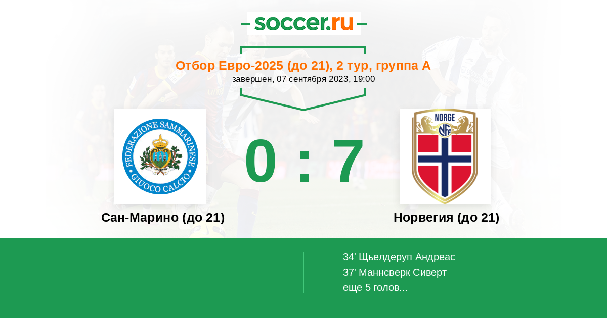 Протокол матча Сан-Марино (до 21) против Норвегия (до 21)